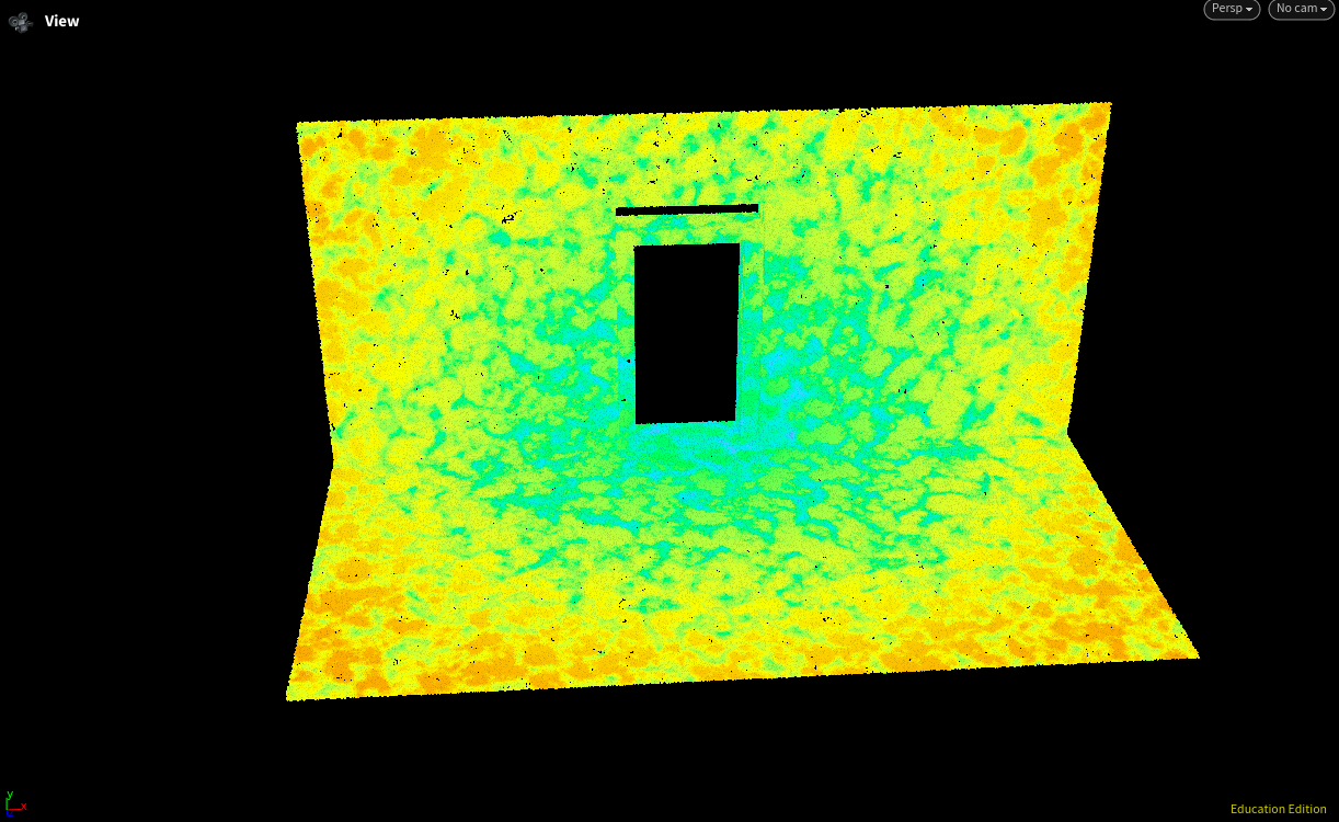 My biggest change I added was a kick up dust trail following my speedster running down the hallway. Below is the process for how I achieved it. First I took my running character (same one used for the trail), then I used an attribute transfer to transfer the footstep to the ground plane. The result is shown below.