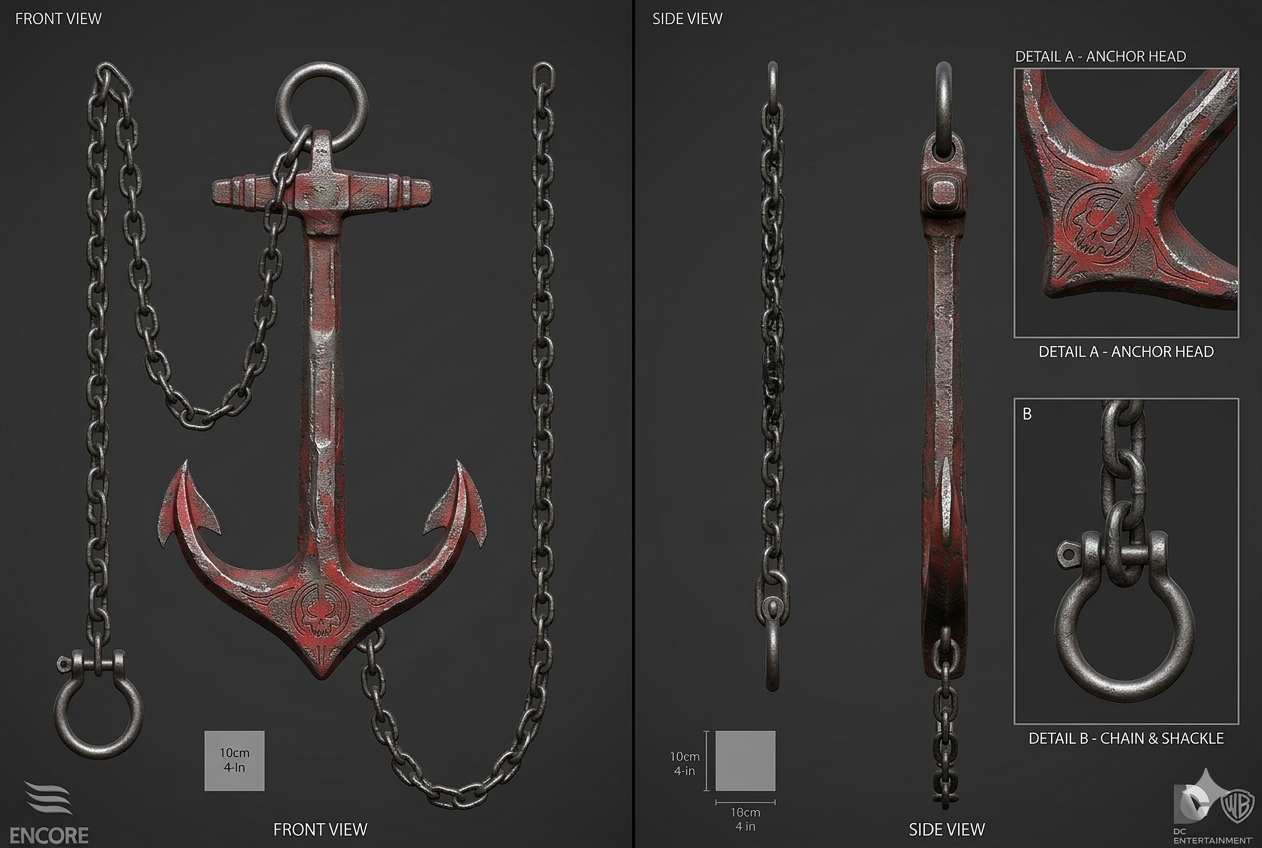 For my sculpt, I also want to incorporate a prop of some king, just to add to the narrative a little bit. The prop that I chose was an anchor, attached to a chain, like a rope dart (kyoketsu-shoge). Here is the prop turnaround and with my character. These are generated by Gemini, and are in no way my work.