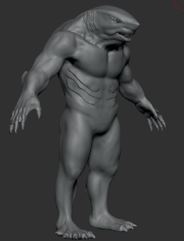 From this point, I have been developing the full set of features for my shark, focusing on everything from the head to the proportions of the neck and trapezius muscles. I’ve also worked to distribute weight in a way that feels natural and believable. Since I’m not aiming for a stylized look with this sculpt, maintaining realism and accurate anatomy is a top priority.