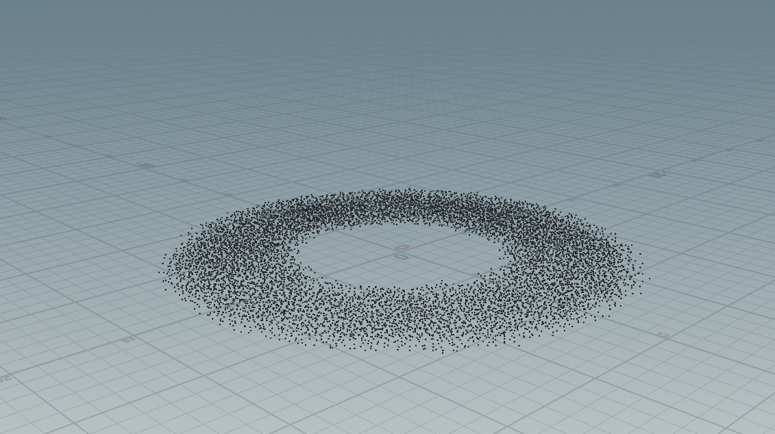 Whether you choose the Wrangle or VOP-based approach, you should arrive at a similar result, as shown below. The motion should resemble that of a vortex, with size, width, and thickness driven by the parameters you’ve set. If your simulation doesn’t match the reference, double-check that no nodes are disabled in your VOP network or that no lines have been accidentally removed from your Wrangle, either can easily break the setup.