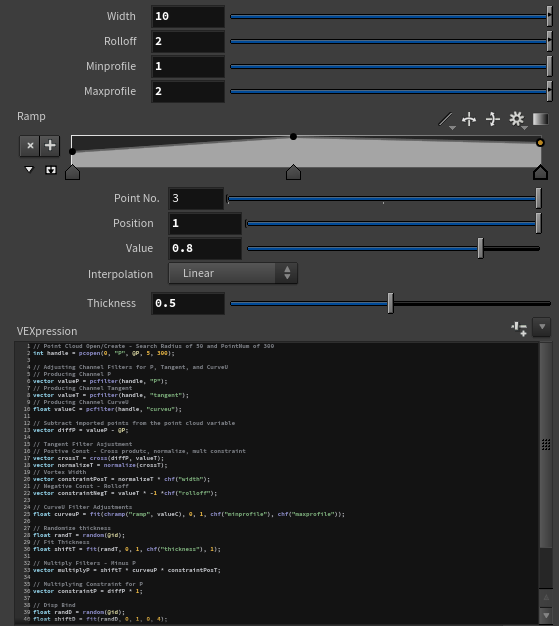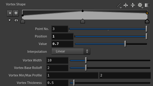 Both approaches expose top-level parameters that allow you to control the vortex’s width, width falloff, profile size, and overall thickness. The overall shape can also be further refined using the ramp controls. Feel free to adjust these parameters to suit your specific use case.