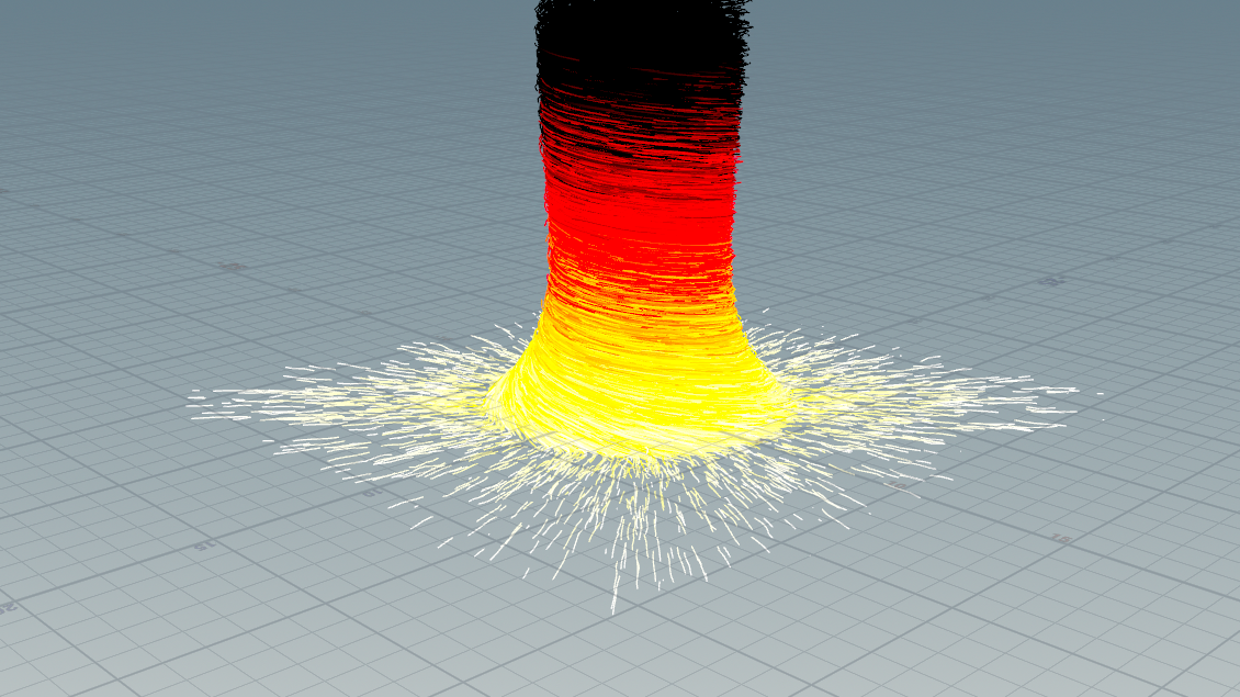 Using the exact parameters from above, I created a quick playblast to show the full simulation in its default state. While it’s not yet a picture-perfect tornado, achieving that would require further parameter adjustments, it serves as a solid foundation. Think of it as a large block of stone that you can gradually refine by adding detail such as turbulence, disturbance, and shredding. You can also revisit earlier stages of the setup, like Pop Force or Pop Drag, to introduce more variation and break up the motion.